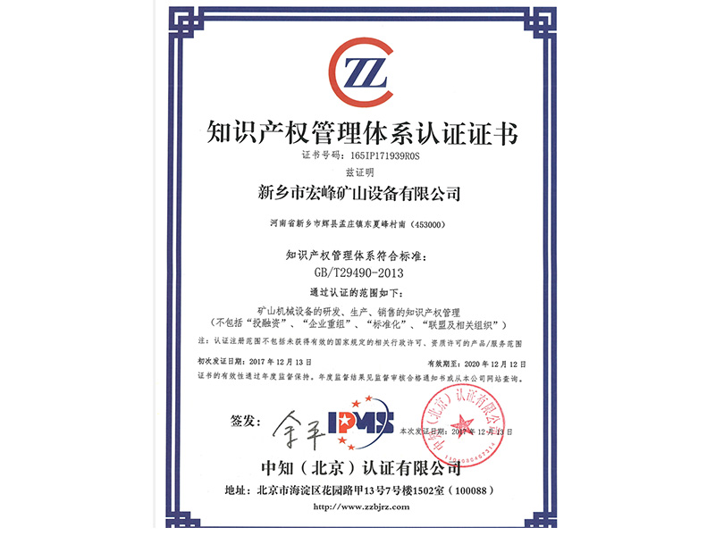 热烈祝贺新乡市宏峰矿山设备有限公司获得知识产权管理体系认证认证 —— 2017-12-20